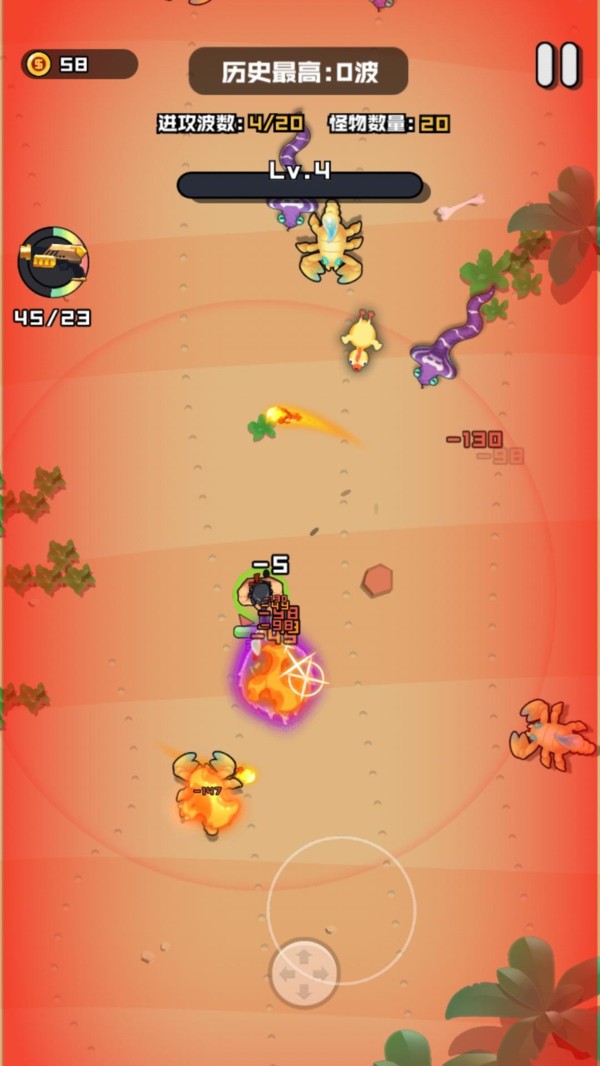 每个关卡中打怪物,干掉大量的敌人,使用武器和道具杀死怪物,