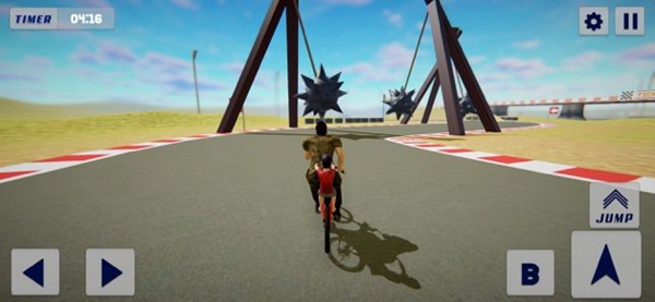 【勇气与荣耀】是一款和拯救有关的驾驶类游戏,玩家会在游戏中驾驶着自己的自行车,并且后面还背着自己的孩子。目标就是闯过各种复杂且危险的赛道,安全到达对面。考验玩家对于单车的掌控,尤其是游戏中各种障碍之间交互时间的判断,自己的速度也是要好好控制的。