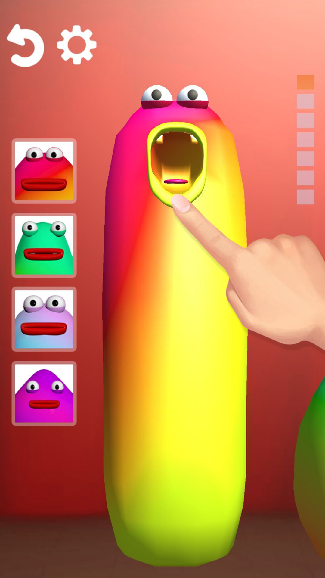 3、用手指按住舌头开始,然后几个诡异的歌唱家的嘴巴就会随着你下拉的幅度发出惊人的高音。