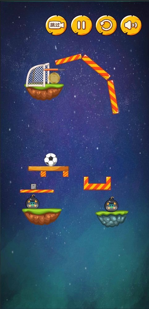 2、让你的足球轻松的越过这些障碍物,提供了各种各样的皮肤。采用一定的策略将这些障碍物全部击垮。