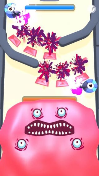 1、玩家在游戏中是一只不停吃吃吃的史莱姆,滑动屏幕控制史莱姆的行动方向;