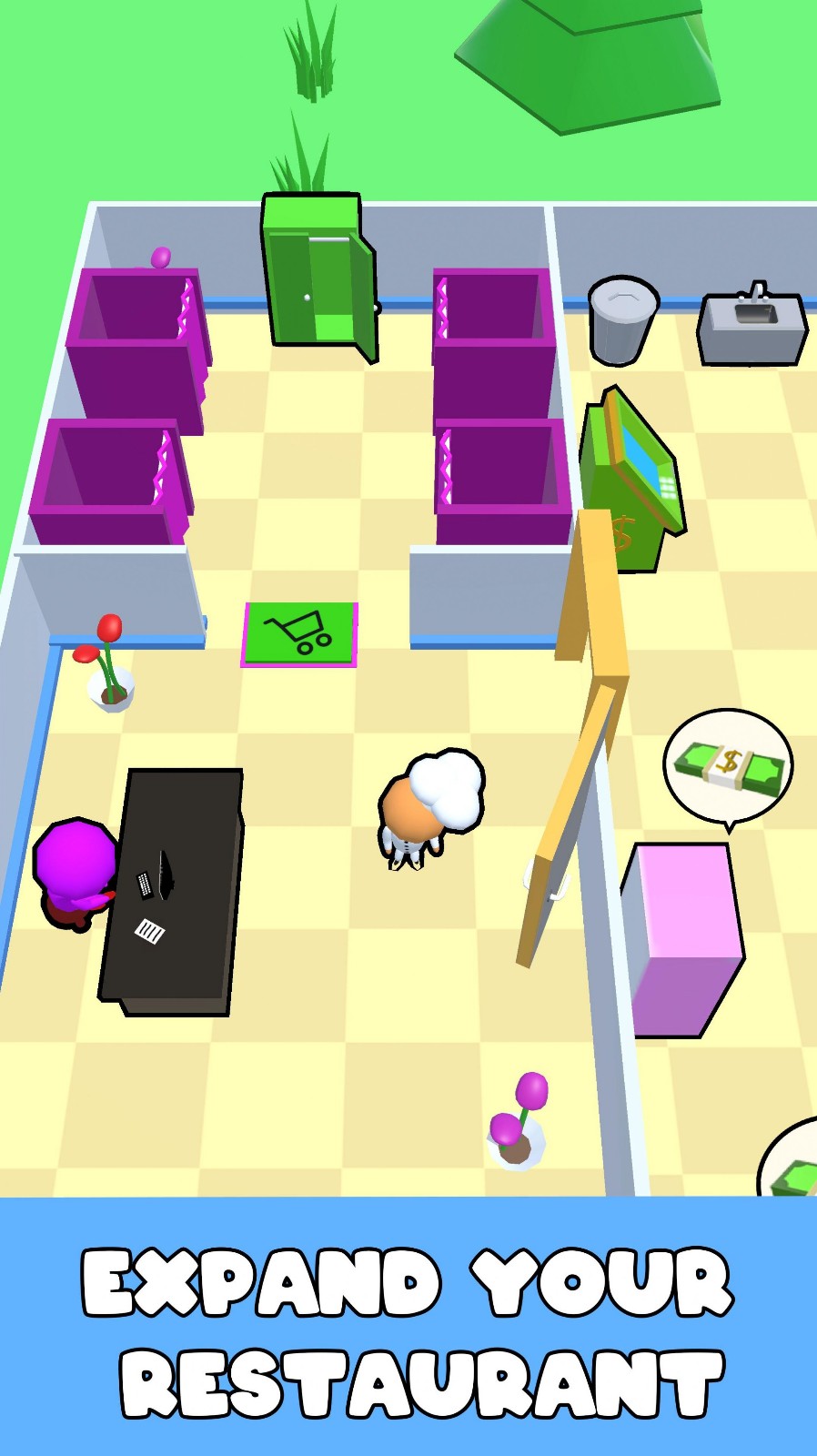 3、在场景中移动角色,必须选择如何投资资源来利用餐厅并使其成功。