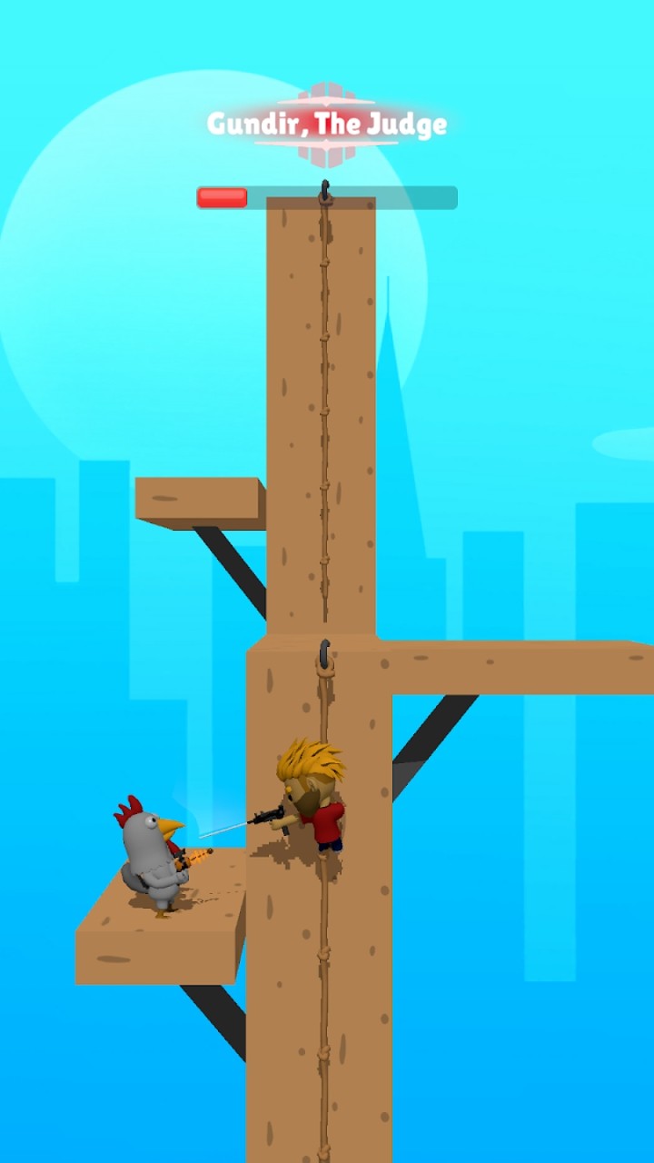 3、玩家将扮演忍者高手,展示自己的飞镖技能,你和对手在各自的蹦床上上下弹跳。