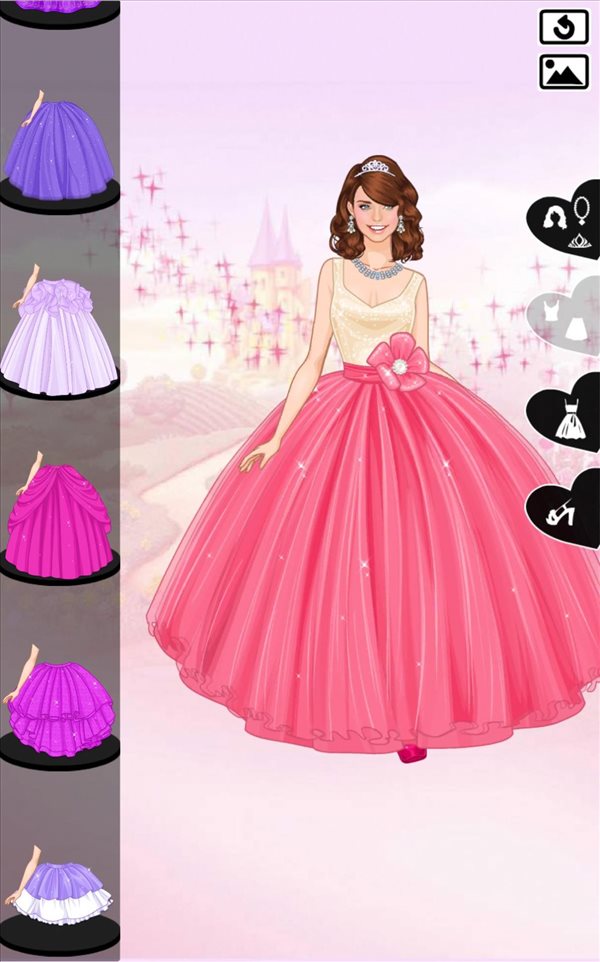 2、为公主挑选最适合主题的精美礼服,还可以为来自世界各国的公主进行换装;