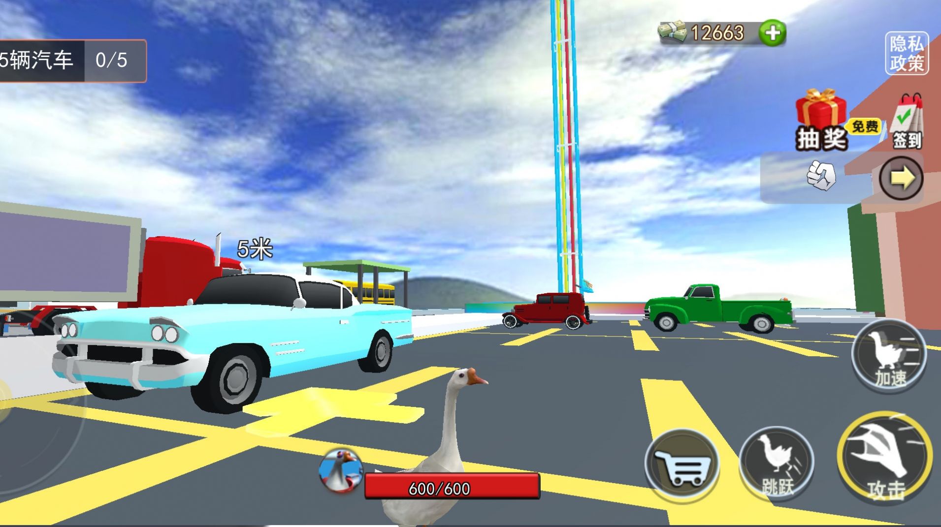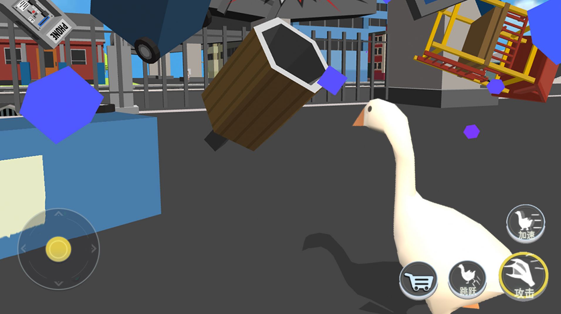 1、在游戏中成为大鹅去破坏一切,你就能这个城市中的霸主,没人能管你;