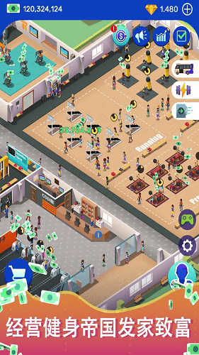 需要玩家努力赚取金币,扩建自己的健身房,购买更多的健身器材,还有聘用更多的健身教练。