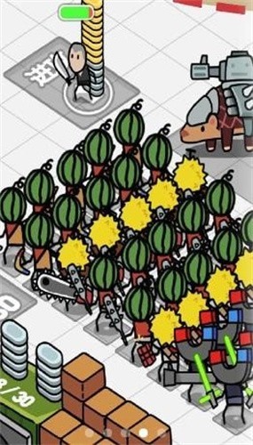 种植西瓜,西瓜变成西瓜兵和敌人对战的游戏,当玩家的种植等级越高,西瓜兵的战力就越强,更容易击败敌人。