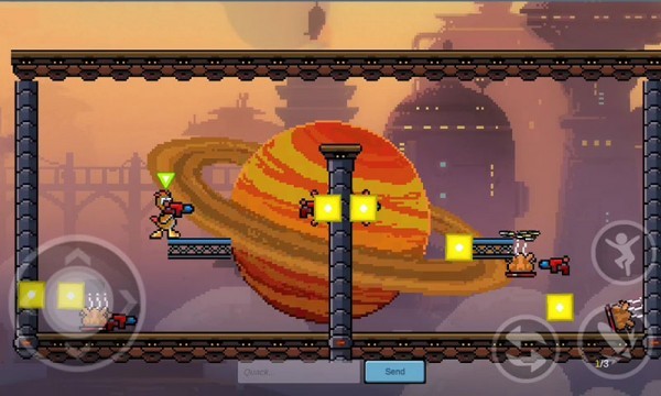 采用了独特的横版动作结合像素风格,玩家能够在游戏中享受更多独特的对抗玩法,在游戏中玩家能够体验到2-4人的乱斗。