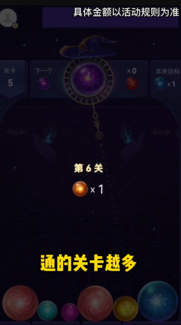 神秘水晶球游戏超多闯关好礼送不停,通过的关卡越多得到的现金红包就越多,操作简单容易上手,将这颗水晶球放置在相应的位置上,点击按钮自动弹出去,通过撞击到其他颜色的水晶球来稳固自己的位置,积累的越多得到的奖励就会越多,挑战关卡任务,赢取现金红包,不要再犹豫了,赶快下体验吧。福利多多。