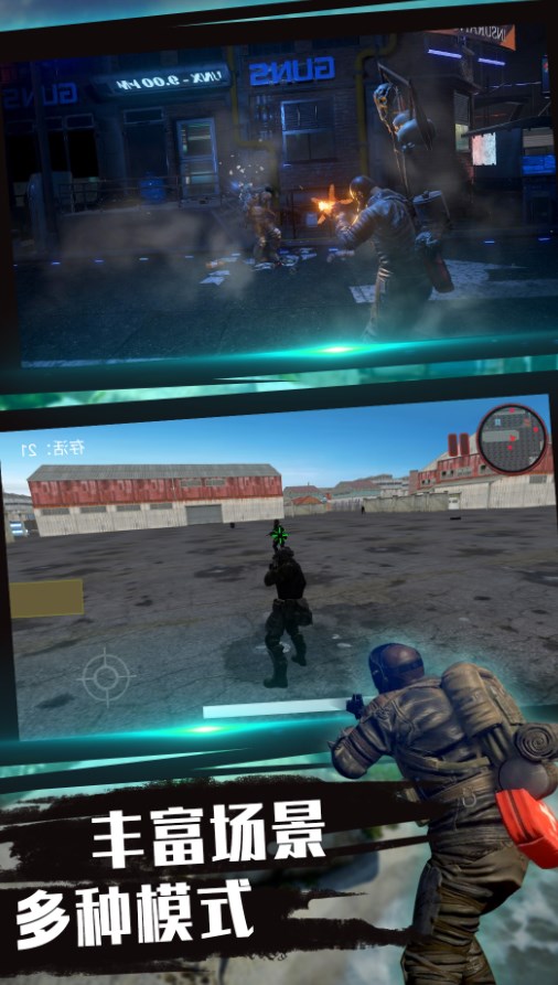 3、各种炫酷逼真的动作画面,超级酷炫的射击技能。