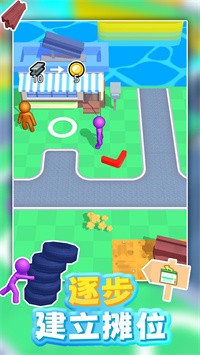 2、解锁更多的区域来收集更多的材料,扩大你的店铺来招募更多员工。