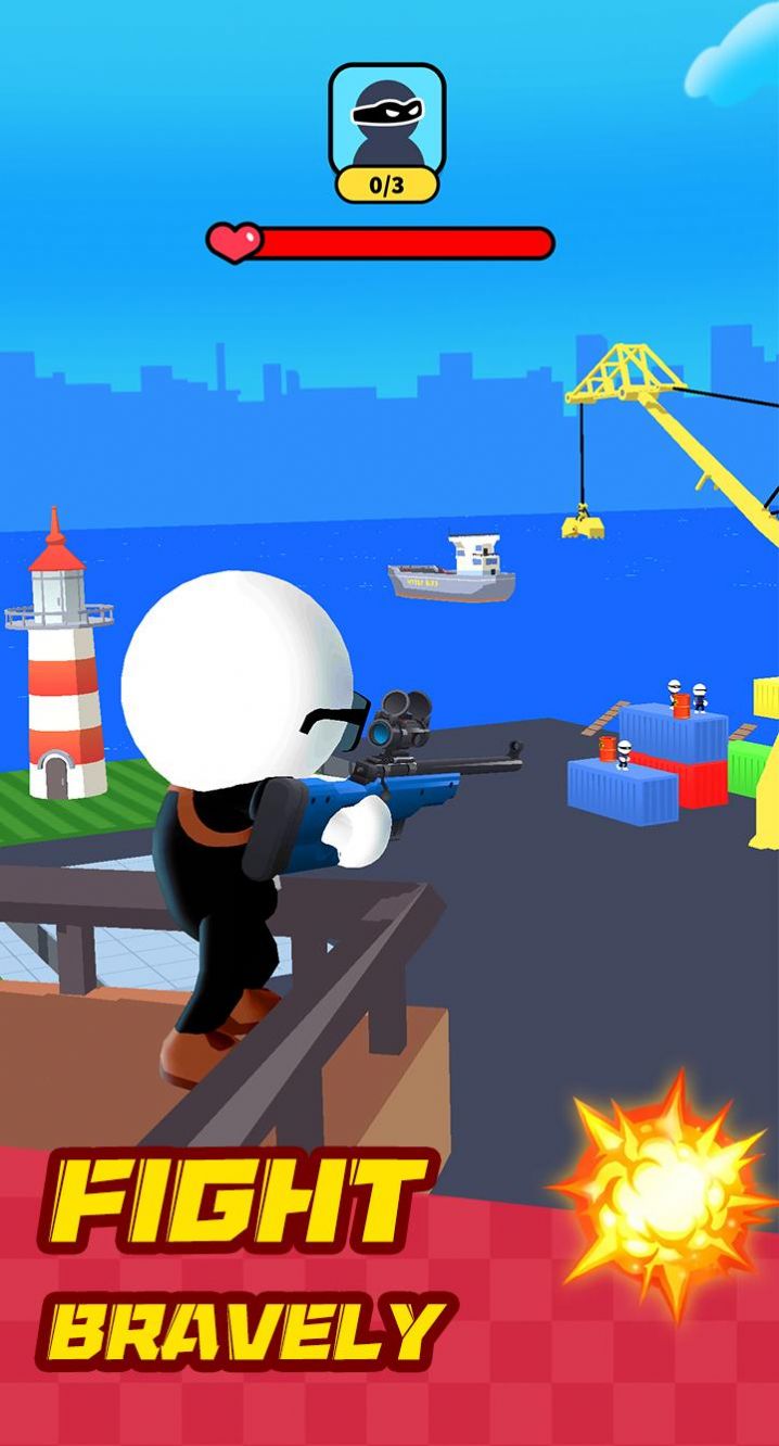 面条人特工狙击手全新的挑战风格,独特的造型设计,玩家在高速完成任务的同时,不断的收集物资来装备自己的狙击枪,升级狙击枪的射击范围的射程距离。