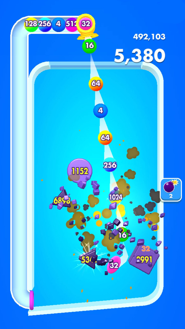 2048解压方块是一款消除益智类游戏,你需要通过小球间的碰撞,来达到消除的目的,你需要消除到2048这个数字,才能取得游戏胜利,想要快速的达到这个数字,还是需要你掌握一定的技巧的,你可以通过不断的游戏来找到技巧、提升自己的水平,这一场小球消除之旅,欢迎你的加入!