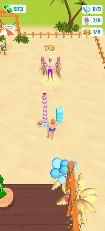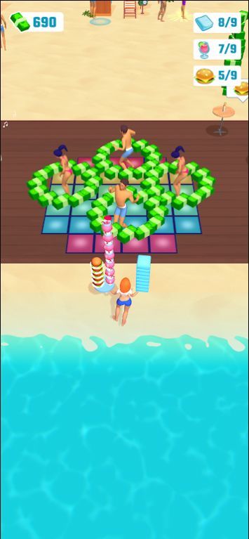 海滩度假村在这个浪漫的沙滩上开启各种各样的狂欢派对吧,在这个沙滩上可以开设自己的海景别墅和各种小吃店,这样来增加自己的收益,不断的将这些店铺来进行一个联动,招募更多的人更好的服务顾客,给他们最优质的服务,让他们能够去吸引更多的游客来这里消费,不断的更新装饰自己的店铺。