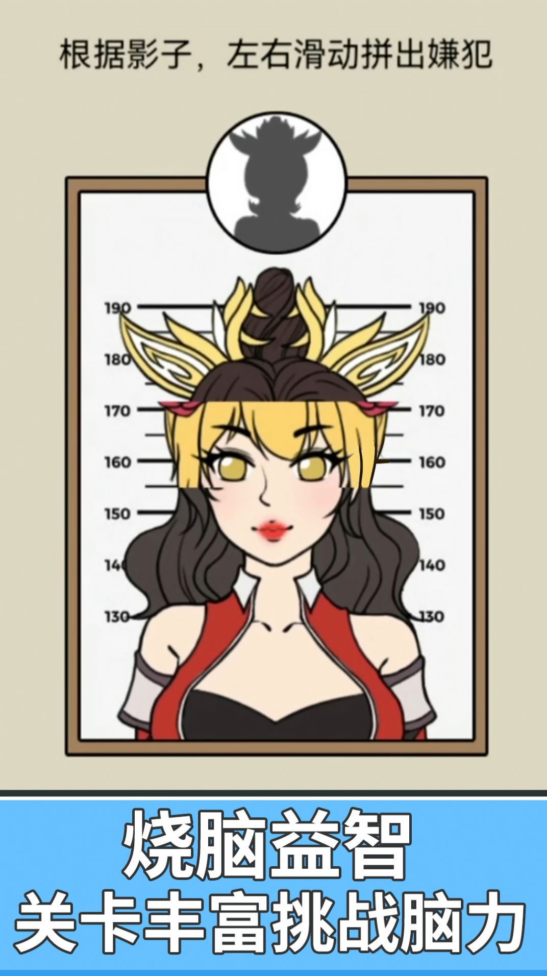 2、通过阴影来推理出犯罪者的模样,然后使用给出的五官元素来拼图,完成解谜的任务。