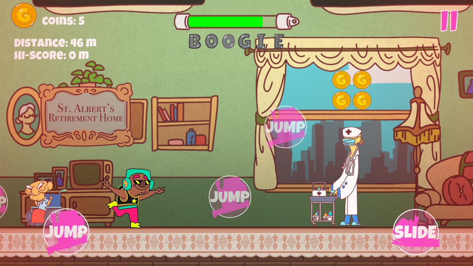 1、玩家操作的是一位嘻哈老爷爷,老爷爷酷爱跑酷,玩家需要帮他完成一项项艰难的挑战。