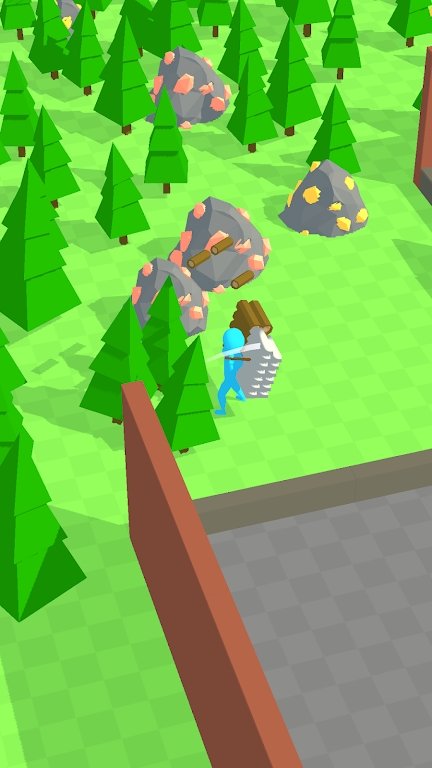1、随意滑动屏幕控制角色移动到森林里进行采伐,去进行资源获取。