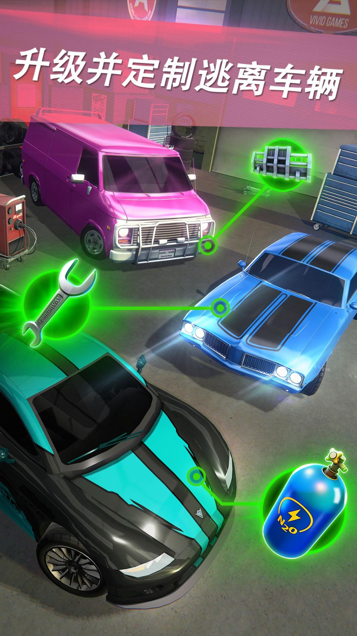 3.选择合适的赛车去完美的逃离这里,让你的挑战充满无限的乐趣。