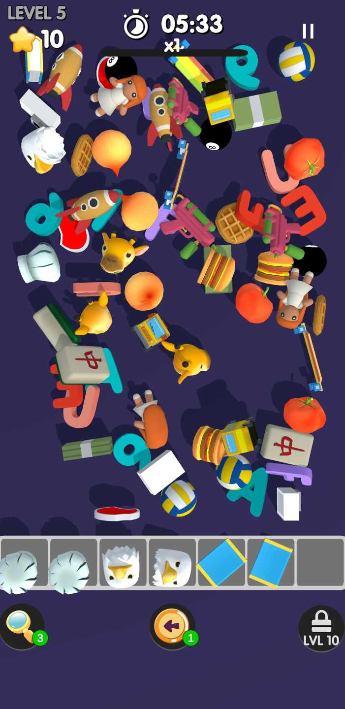 瓷砖玩具比赛3D是一款休闲消除游戏,有各种好玩的关卡,每一关的玩法都不太一样,玩家需要根据任务来从这一堆东西中寻找到需求的着几样物品,并且点击拾取足够的数量,即可完成任务,每一关都有丰富的挑战等你来玩,完成将会获得丰富的奖励,可以解锁更多的关卡和好玩的玩法。