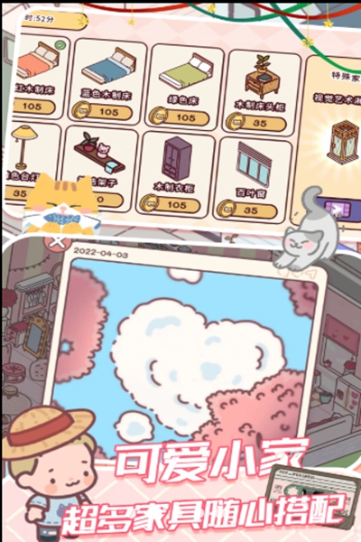 1、这是一款新颖的摆放治疗类游戏,既有摆放家具,也有抚摸猫咪的功能,画面丰富,画面简洁。