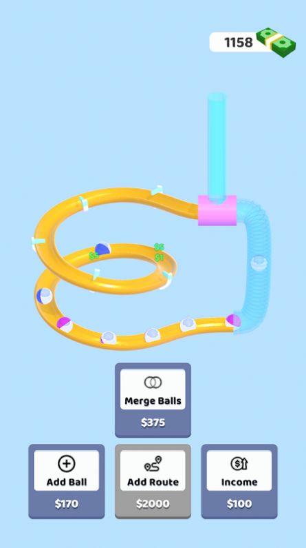 3、收集更多的球球,完成不同的挑战,每关的目标都不一样,顺利的过关赚钱。