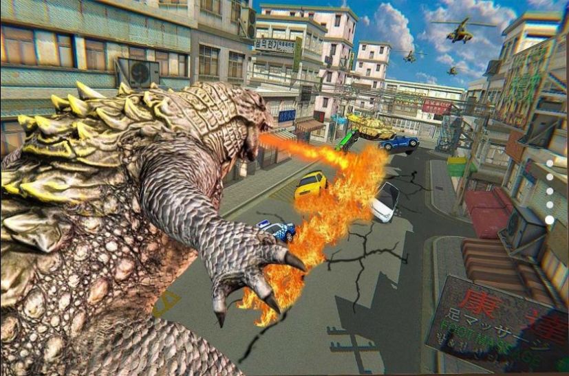 1、化身成为各种哥斯拉,在城市中不断的摧毁就可以让你变得越来越强,甚至是获得技能。