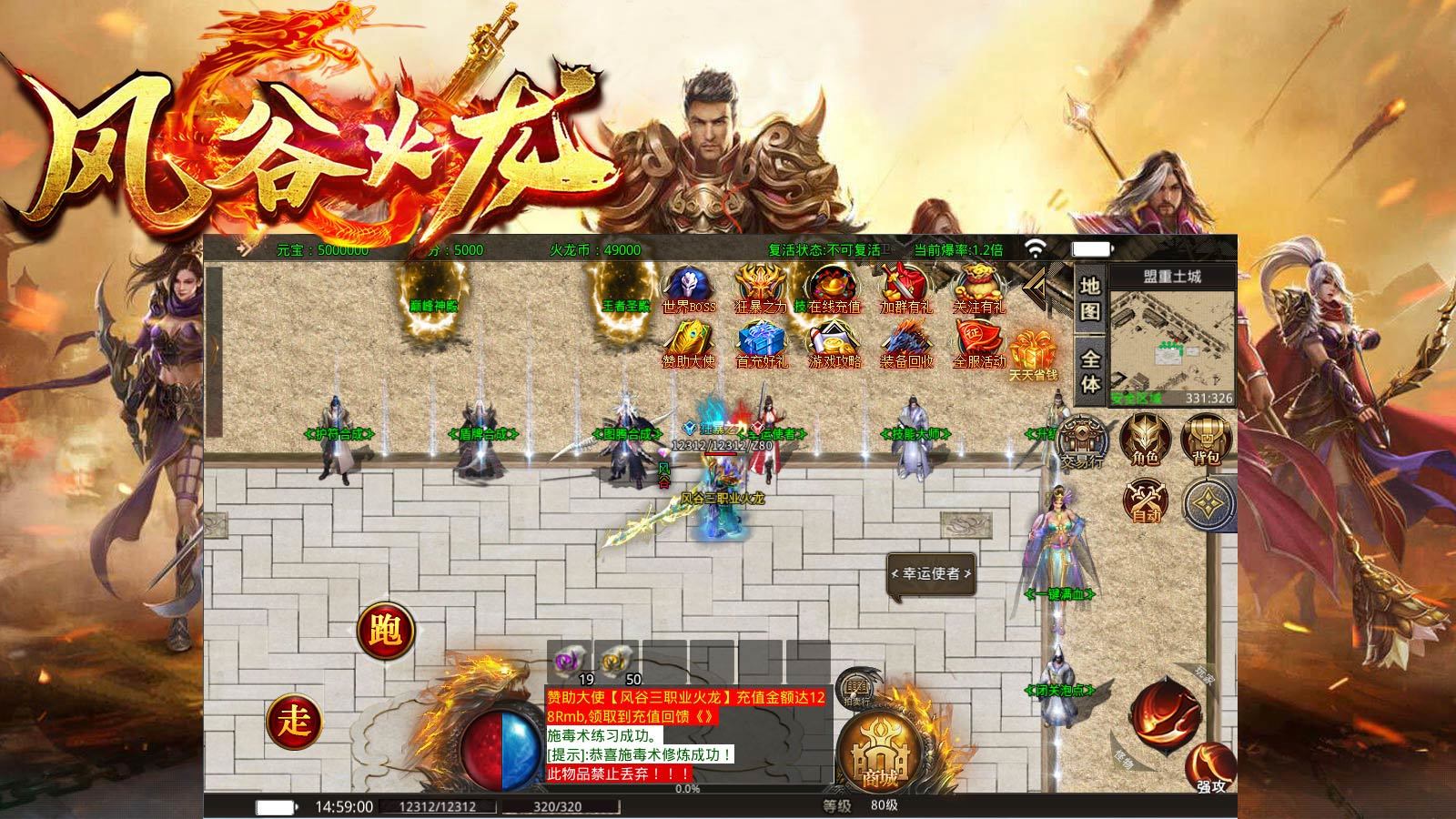 1.风谷火龙耗时半年精心制作,全新版本,无特戒,无秒杀,各种福利免费送