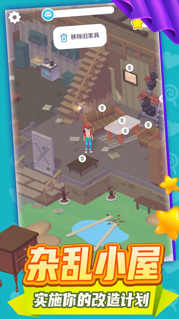 2、欢乐无比的游戏体验,杂乱小屋,随时可以自由进行改造;