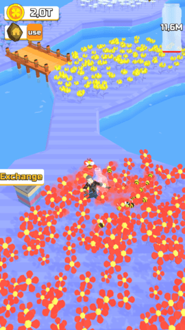 2、探索不同的地图,与不同种的小蜜蜂遭遇,收集更多不同种类的蜂蜜获取加分。
