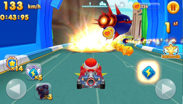 3、展示出来的所有技能特效使人眼花缭乱,各种道具还有驾驶技能需要合理的进行运用。
