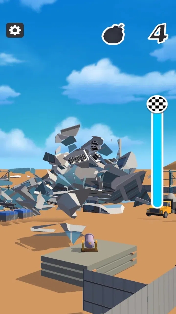 2、关卡中会有固定的金属,是你无法炸掉的,而银色的墙壁,你可以把它们全部砸掉,还会掉出各种道具。