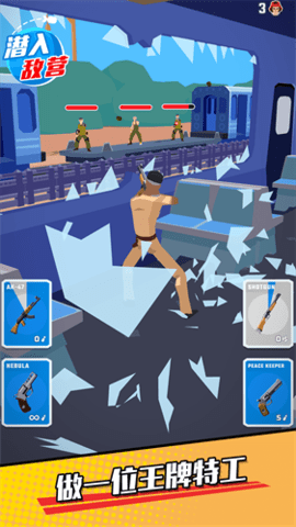 潜入敌营是一款动作射击类型的游戏,玩家在游戏中作为一名特工队的一员,你要做的就是通过任务的内容去射杀一些敌人,你在射杀时是要找到好的角度同时还不能别敌人发现,不然你的任务就失败了,所以你的经验和射击技术也是非常重要的,还要有一个灵活的反应能力,你可以解锁很多的枪支,根据任务的不同模式进行选择。