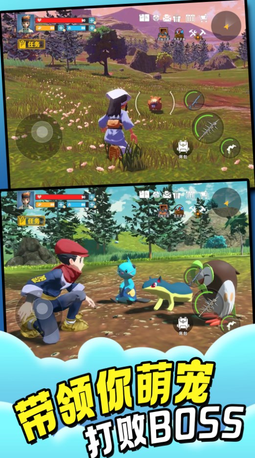 1、广阔的世界中有着更多不同的乐趣,让我们参与精彩的挑战,收服更多的精灵;