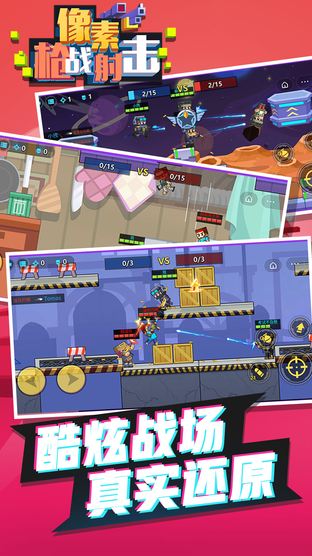 素枪战射击,多人像素吃鸡游戏。游戏画风Q萌,选择方块人进入多人射击战场,包含个人、团队、手雷爆破、末日生化等多种模式,加特林、AK47、散弹枪等武器包拾取,一起展开精彩的吃鸡大逃杀竞技吧。
