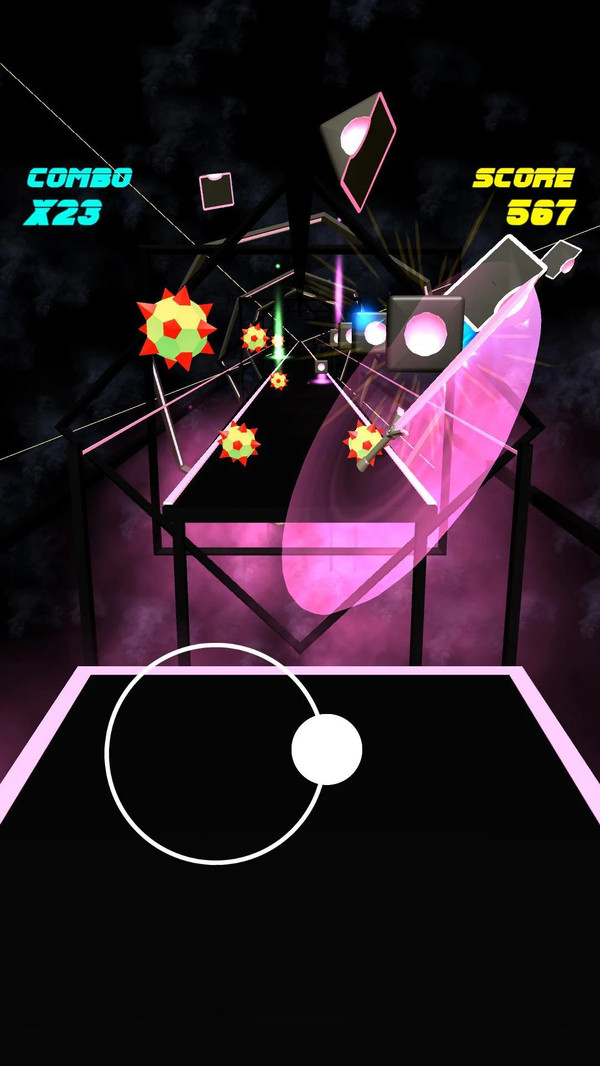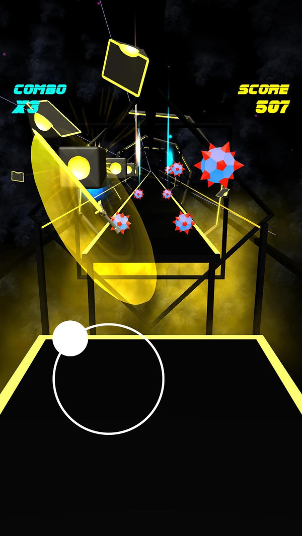 游戏将光剑挥舞元素与音乐节奏相结合,玩家通过虚拟摇杆来控制自己光剑的挥舞方向,