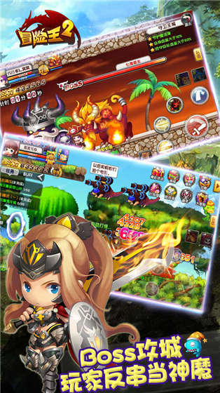 冒险王2手游是一款畅快Q版的超萌动作手游,最酷炫的时尚搭配,最强大的装备体系,带给每一位玩家前所未有的战斗快感;公会战斗实时PK,神秘的野外boss,随时惊喜不断。