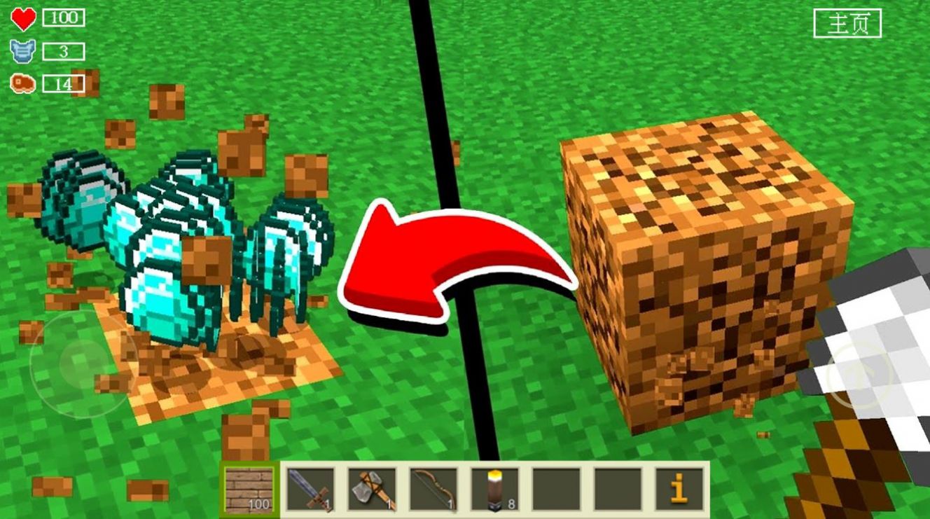 3、全新的像素世界正式开放,这里有大量的冒险挑战等你完成,帮助你快速成为生存大师。