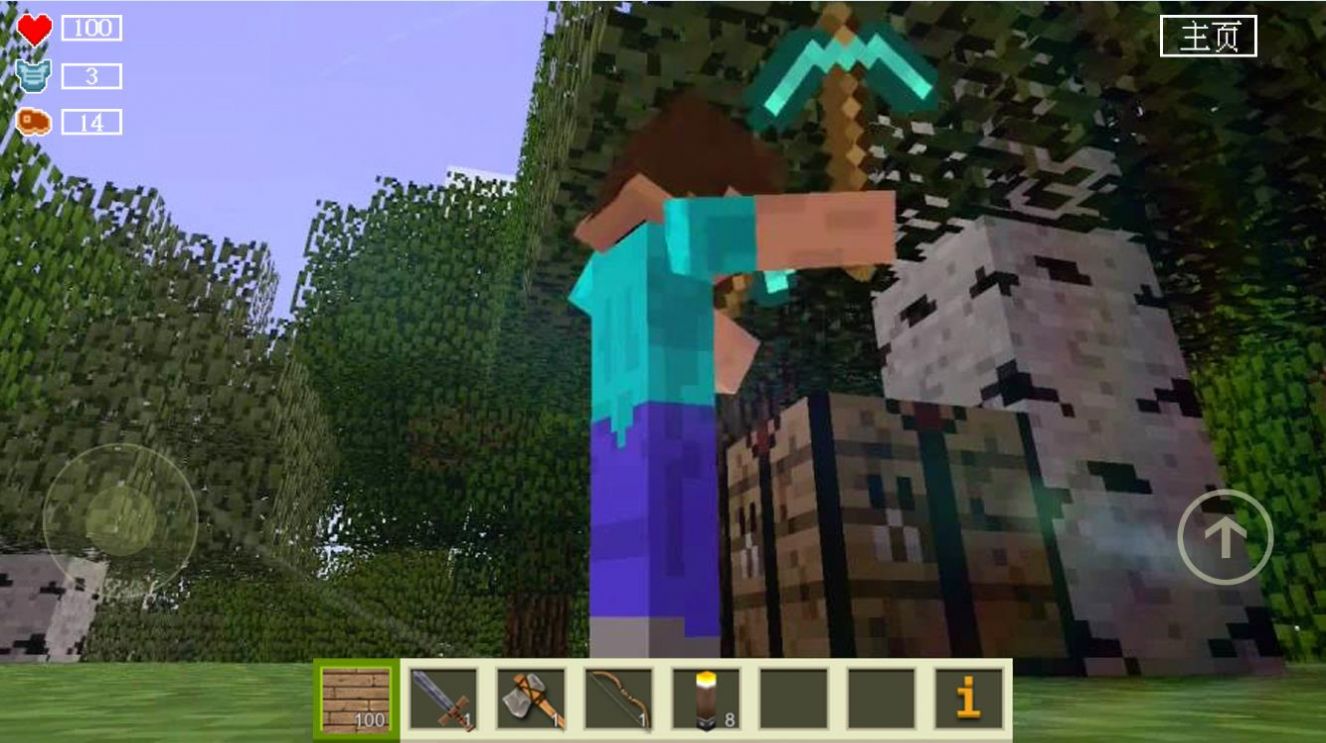 2、保证自己能在危险中生存下来,尽情体验精彩的冒险旅程,制作各种工具来采集资源。