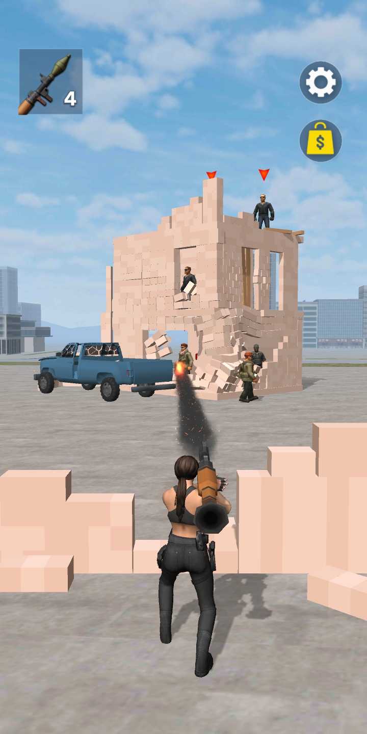 轰炸一切时刻非常刺激的射击冒险游戏,玩家拿起自己火箭筒来将面前的所有的一切全部都击碎吧,来感受一下射击玩法所带来的无限乐趣,看着被粉碎的箱子或者其他的物体,会让玩家感到无比的放松,并且还能释放积压在内心深处的种种危险的信号,然后来获得更多的游戏奖励,去享受整个游戏的完美内容,摧毁一切吧,乐趣十足。