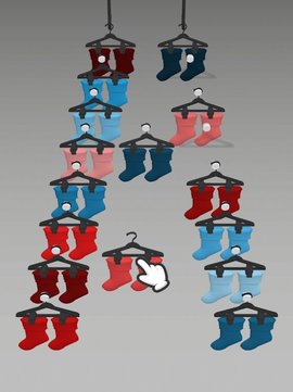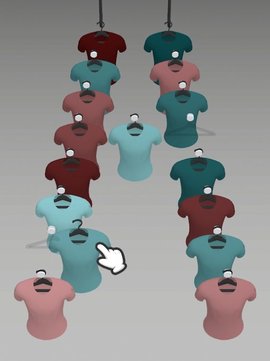 3、在你的操作下,将不同颜色的衣服挂在场景中间的衣架上。