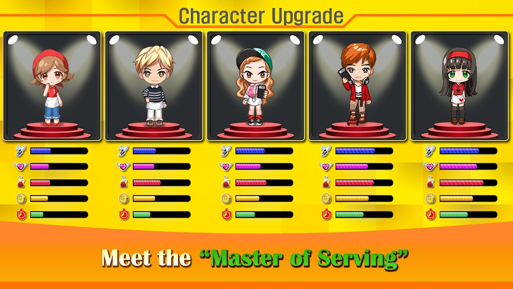 1、可爱的卡通画风,丰富的美食食谱,各种各样的美食将能够帮助我们更好的吸引客人。