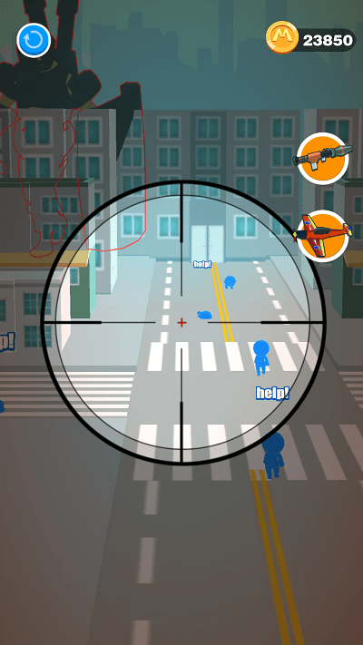2、滑动瞄准,松手射击,轻松射杀敌人,调整射击角度。