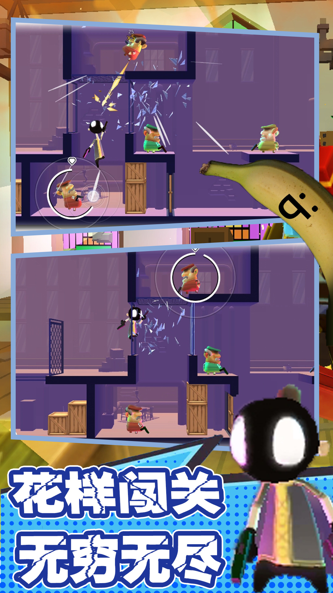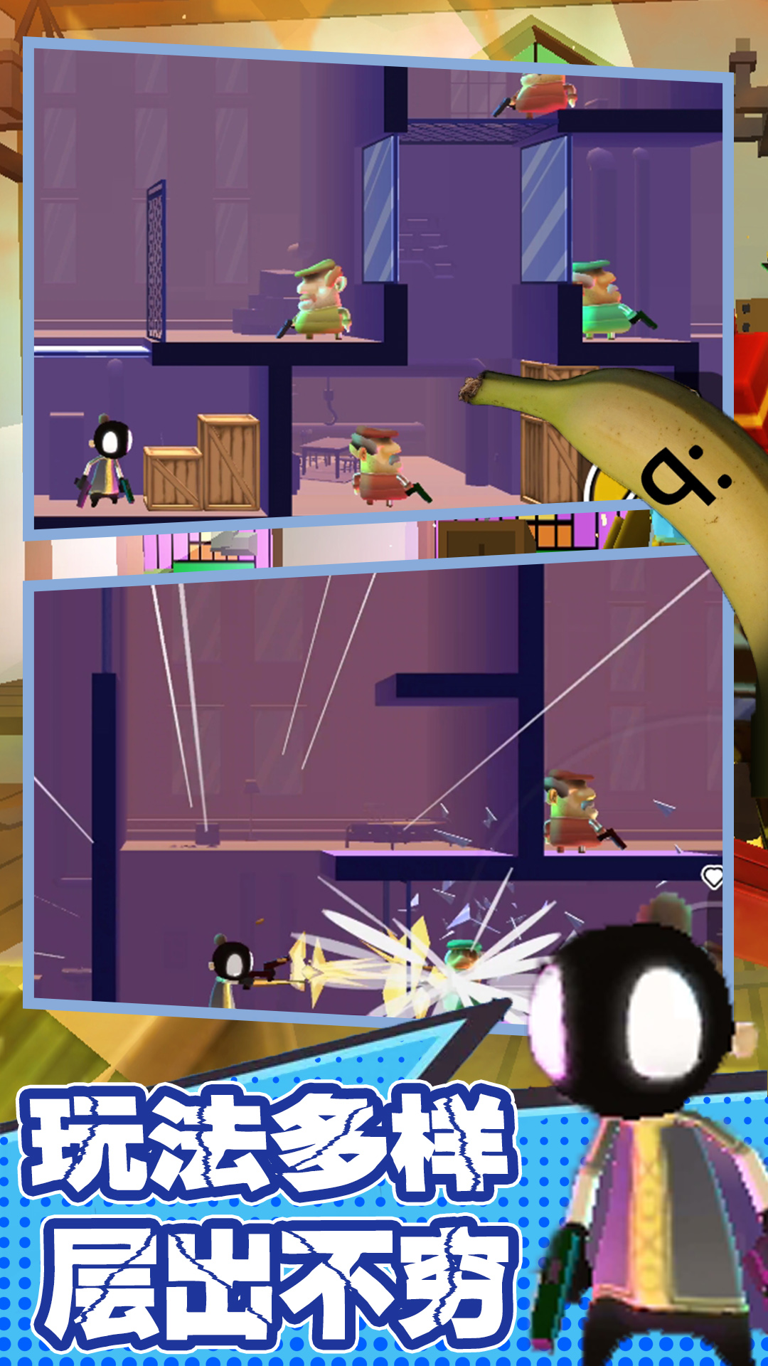 1、面对各种各样的对手,开始刺激的射击作战,面对敌人的出击都能保持冷静;