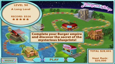 1、新鲜的游戏风格,有趣的食物,欢快的背景音乐,让游戏更有气氛,现在你可以经营和扩大自己的汉堡店。