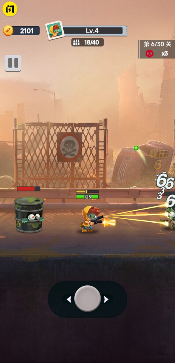 3、动作对决,射击比拼,尽情闯关,消灭所有僵尸。