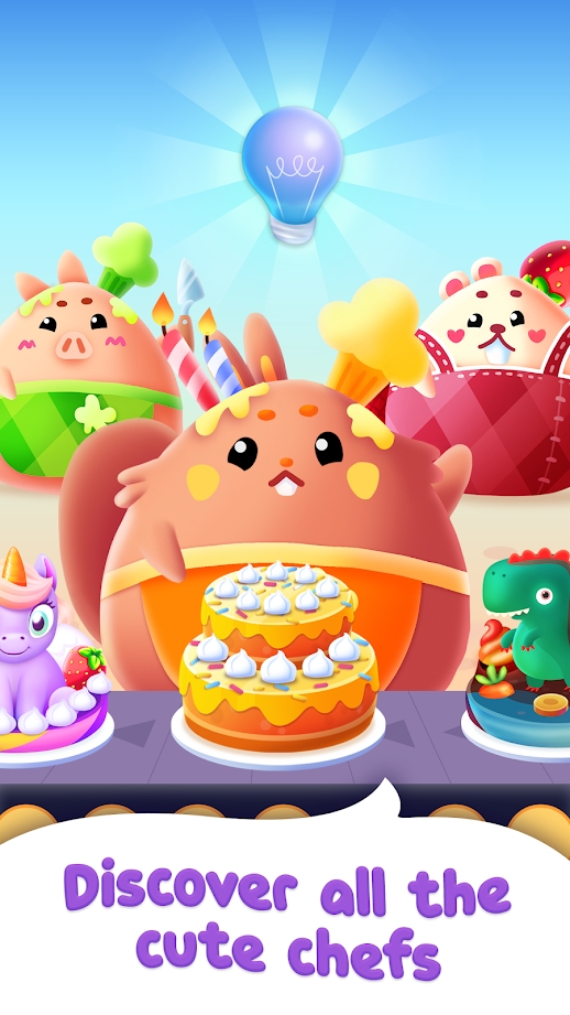 2、要烹饪糖果,您将得到不同的甜点厨师的帮助。每位厨师负责准备具有特定主要成分的蛋糕:巧克力、草莓、糖、柠檬、苹果、胡萝卜、蓝莓和彩虹。