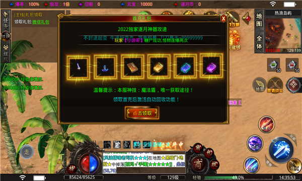 即时玩法,百分百长久稳定,刀刀暴击全新体验,无限刀爆率奇迹,超多副本也零充进。