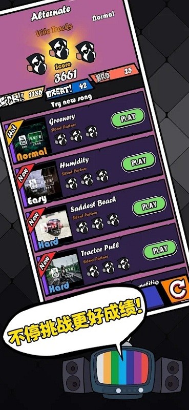 黑色星期五之夜节奏对战是一款非常有意思的音乐节奏类游戏,整个游戏的方式都是非常的精彩,可以体验到各种有意思的乐趣,里面还有很多的音乐可以去进行尝试,然后来进行各种无限的畅听,里面所有的内容都是免费的,大量道具都是可以自由的去进行使用的,每一款就会有一些效果可以去进行发挥,玩家可以好好的进行联机一番,迎接挑战。