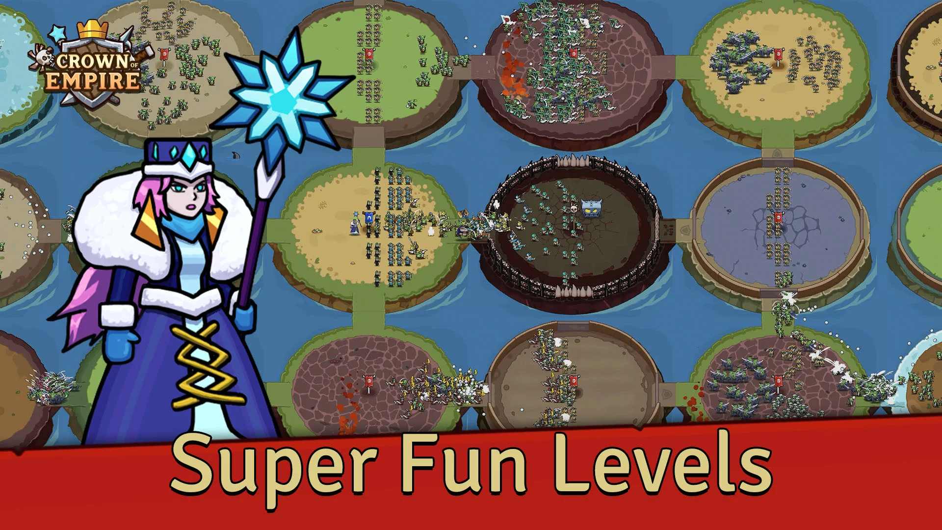 帝国王冠游戏就像小小军团的玩法,能够在同一张地图上召集超多的兵种,购买升级你的士兵,将它们进行正常的部署,越多你的胜算越大哦。