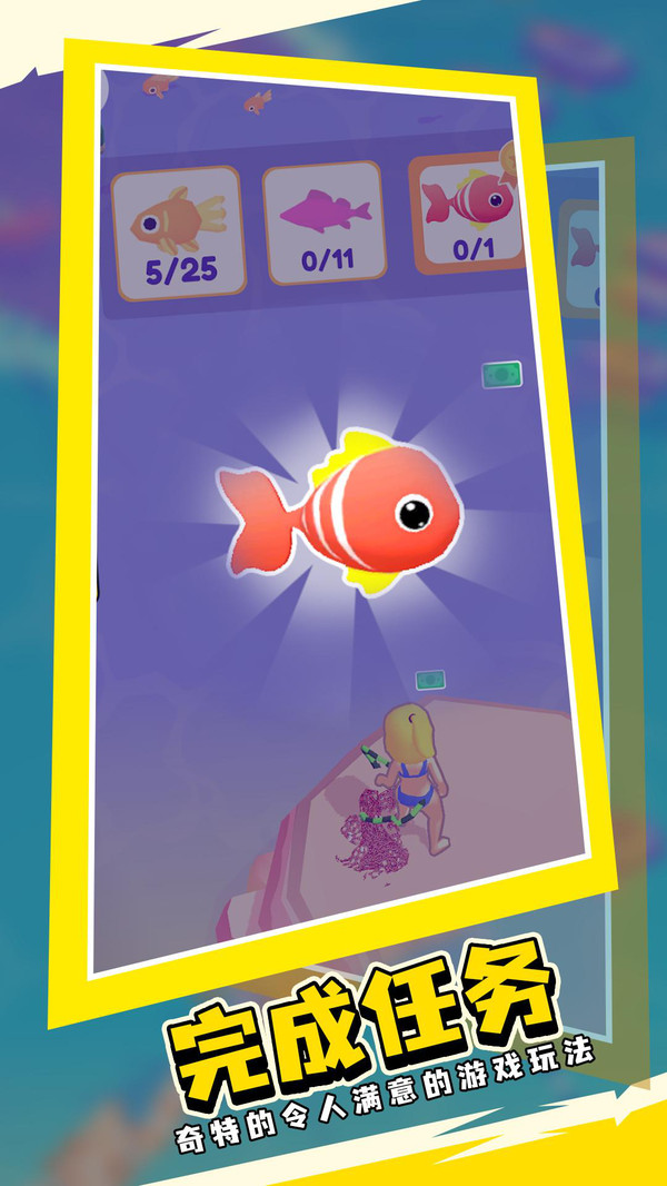 1、去完成更多不同的捕鱼任务,使用各种网鱼的工具来完成大量精彩有趣的挑战吧;